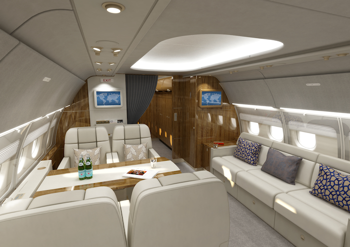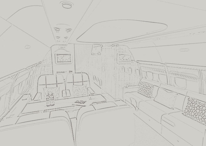 From an empty shell to a flying palace – it all begins with sketching out various floor plan options to depict the various components – private bedroom, sitting areas, dining areas, offices, and a well equipped kitchen. As the floor plan develops we then begin designing the architectural details of each space. This is a very fluid and dynamic phase since this process cycles through many stages of refinement – choosing all of the proper details – colors, textures, leather, carpet designs, etc.